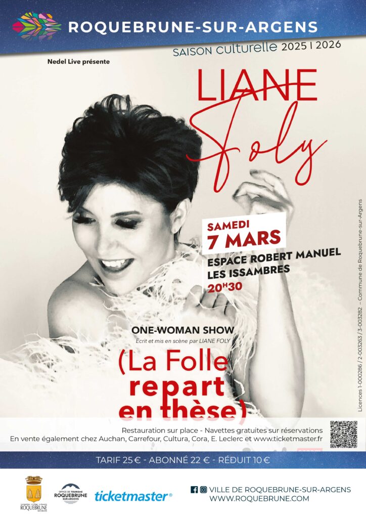 Un seule en scène, un moment de pur divertissement où se mêle comédie, humour et imitations. Après le succès de « La folle parenthèse » et « La folle part en cure », Liane Foly nous offre son tout nouveau One Woman Show : « La Folle repart en Thèse ».