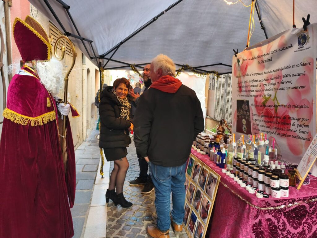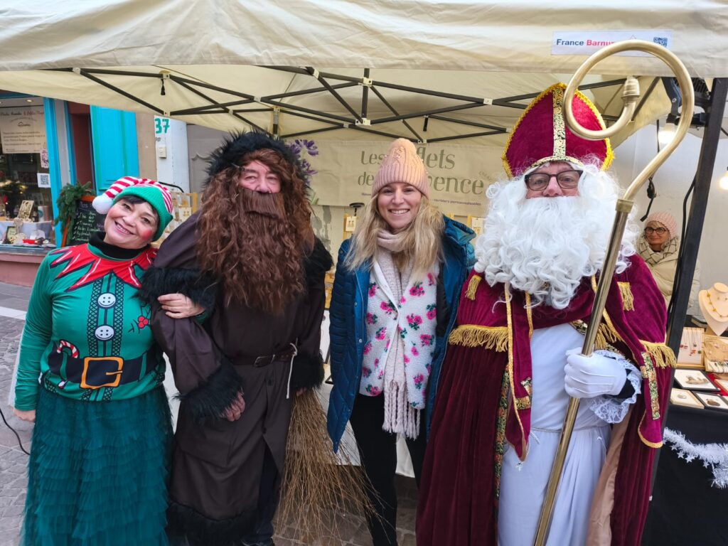 Dans ce décor illuminé de guirlandes et d’étoiles scintillantes, Saint Nicolas en personne est venu apporter sa lumière et sa bienveillance. Accompagné du mystérieux Père Fouettard, fidèle gardien des traditions, et d’une joyeuse troupe de lutins et de lutines malicieux, il a enchanté les enfants, qui ont vu leurs yeux pétiller comme des éclats d’hiver. Les familles venues se promener dans les allées du marché ont ainsi plongé dans un univers féérique où les légendes prennent vie, où les rires se mêlent aux clochettes, et où l’esprit de Noël se réveille pleinement.